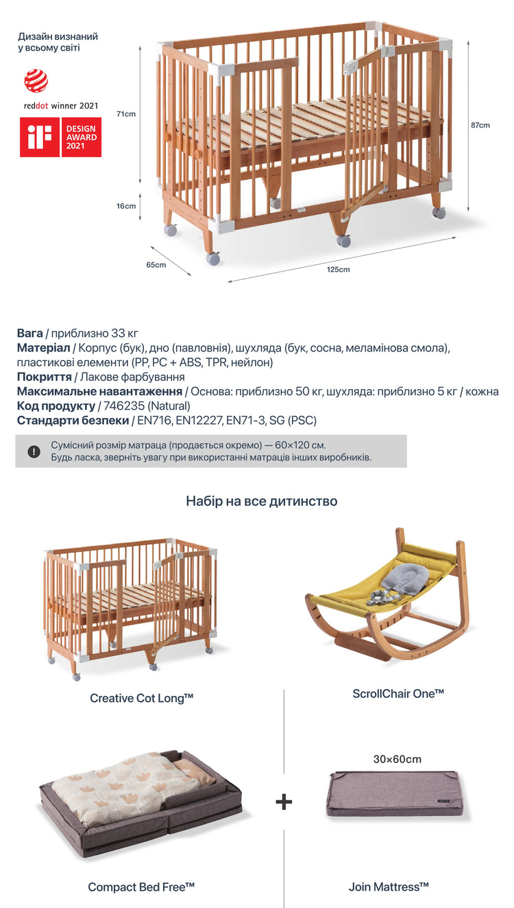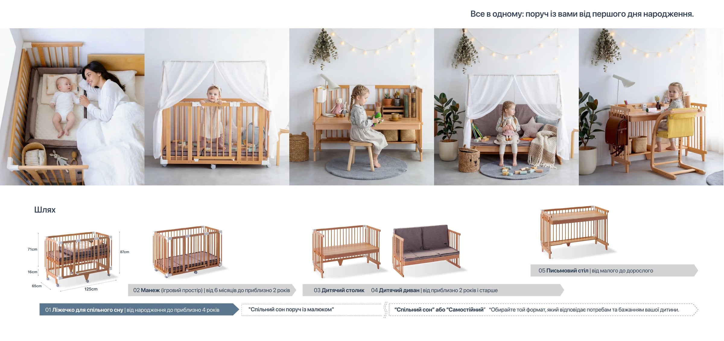 Designed for long-term use, the 5-in-1 concept reduces the need to buy multiple separate products as the child grows. High-quality natural materials and replaceable accessories extend the product’s life cycle.