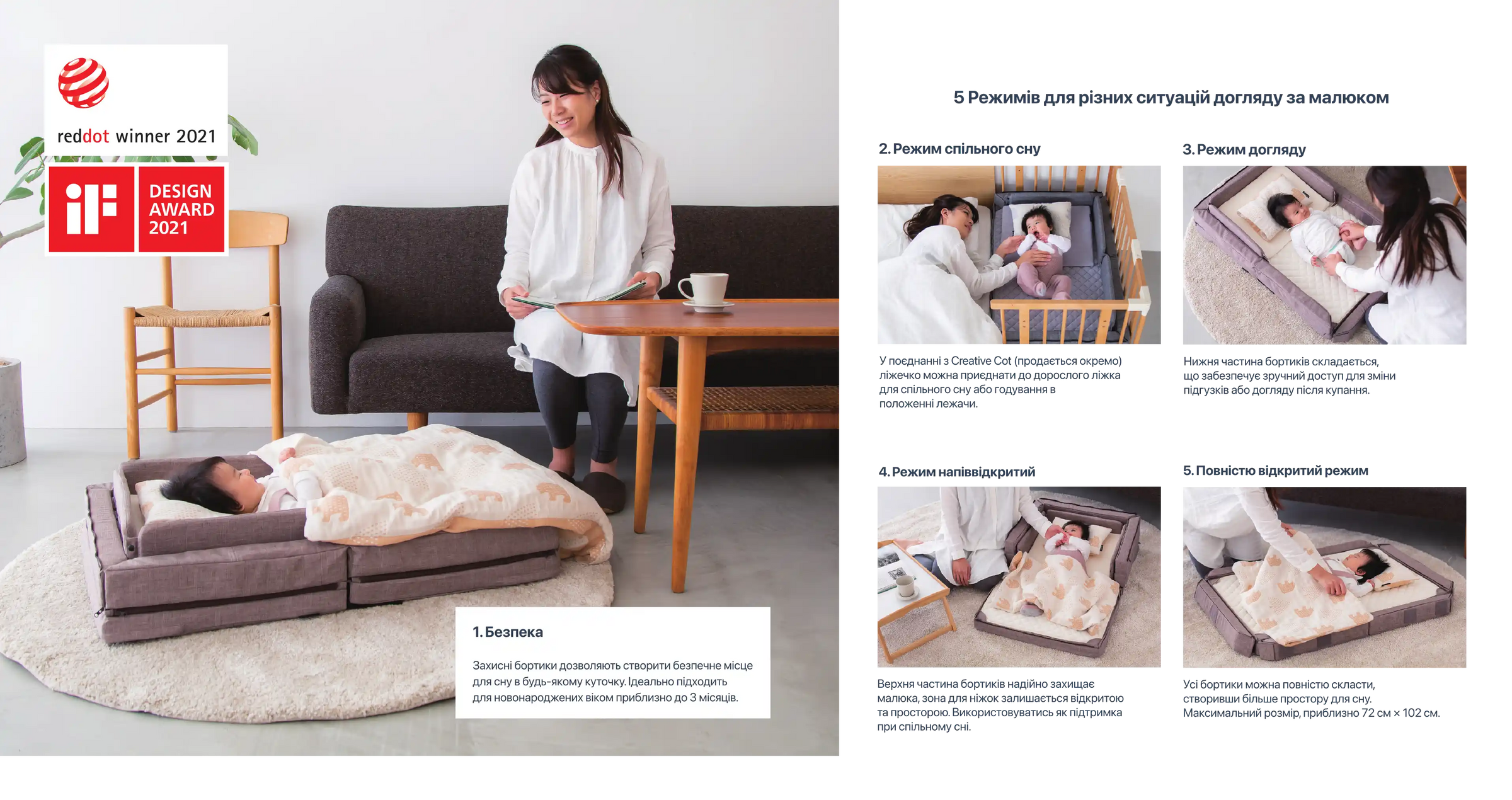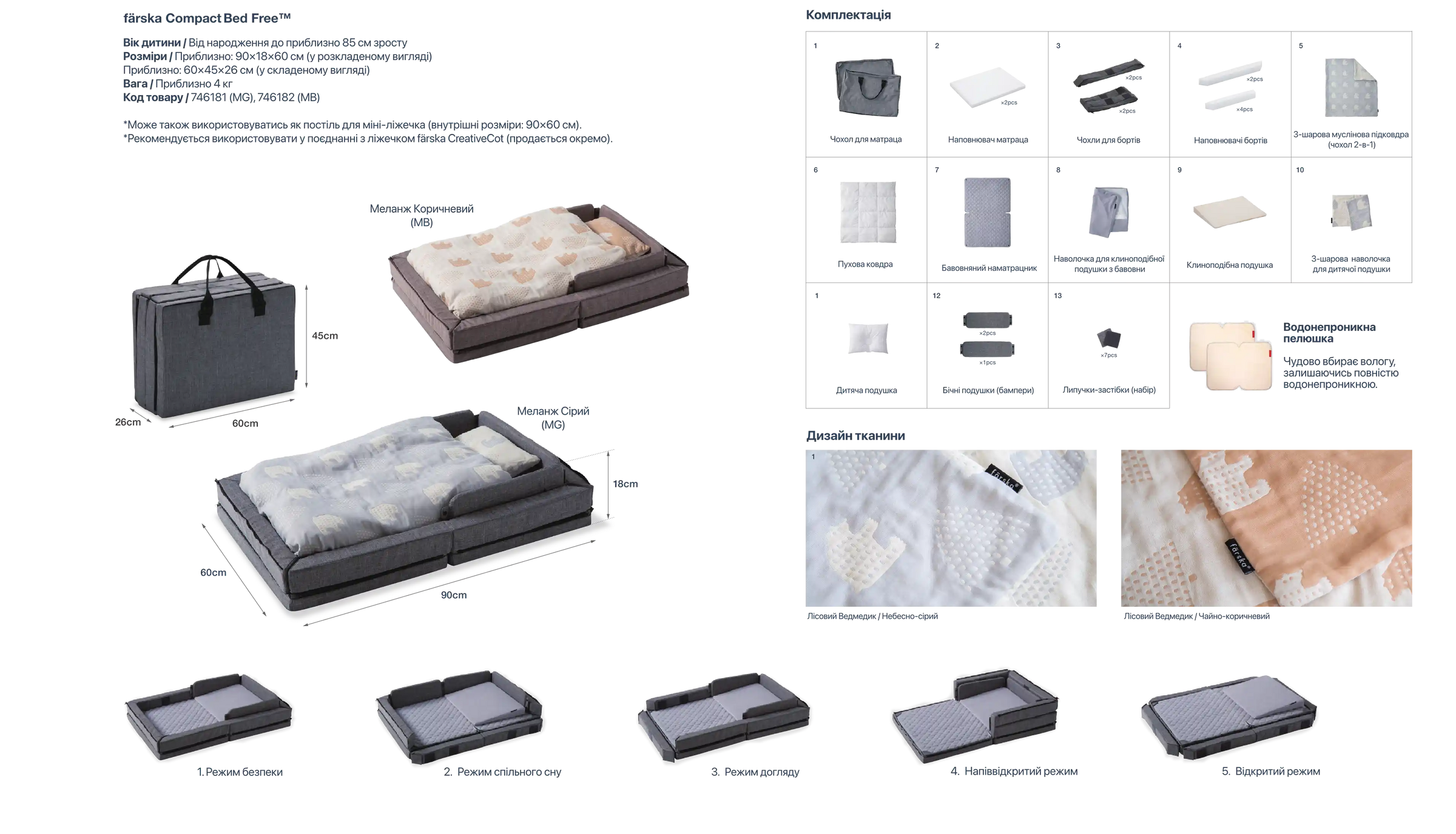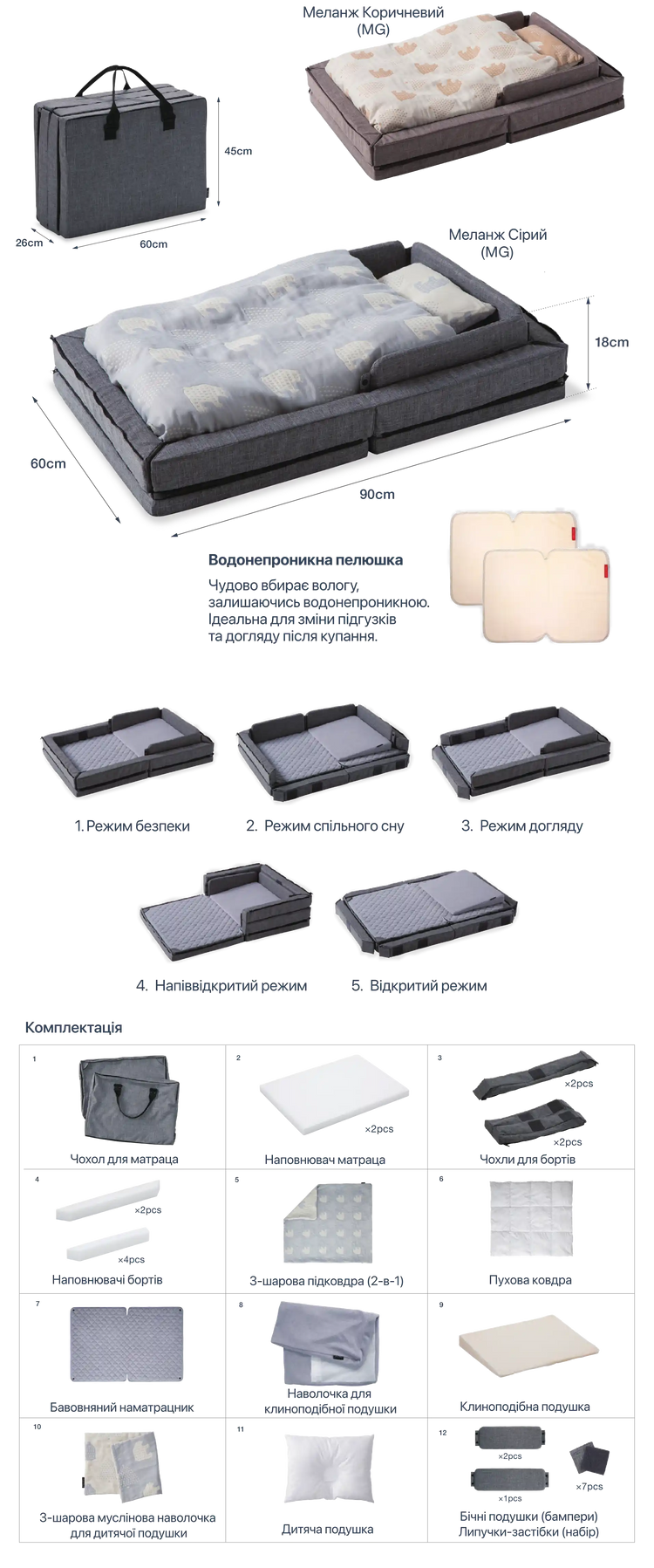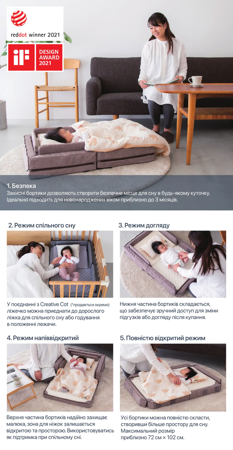• 5 functional modes - from newborn nest to toddler play mat