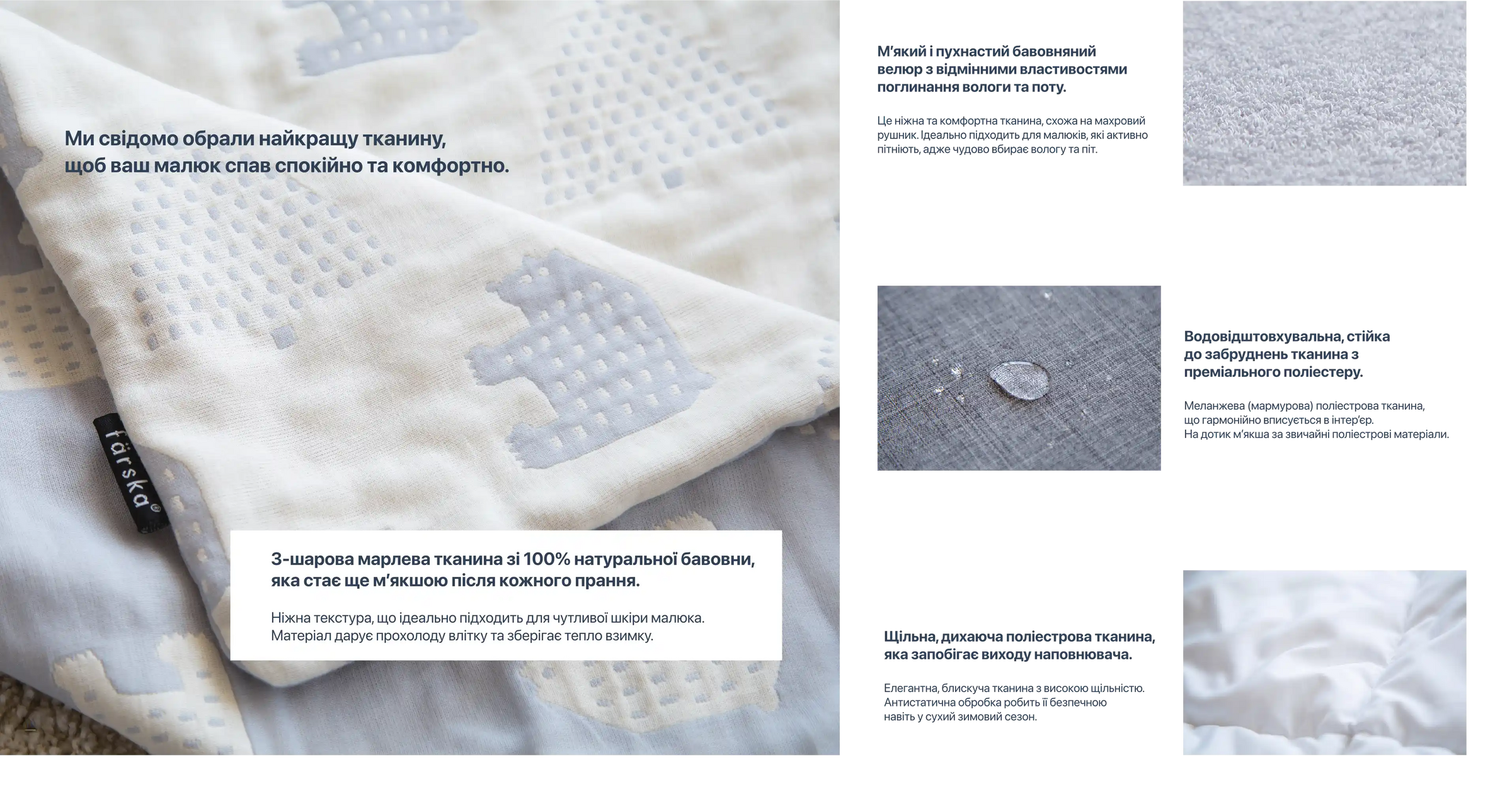 • Certified fabrics safe for newborns from day one