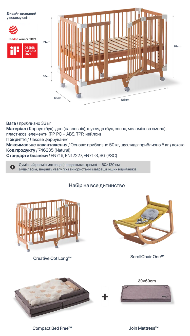 Designed for long-term use, the 5-in-1 concept reduces the need to buy multiple separate products as the child grows. High-quality natural materials and replaceable accessories extend the product’s life cycle.